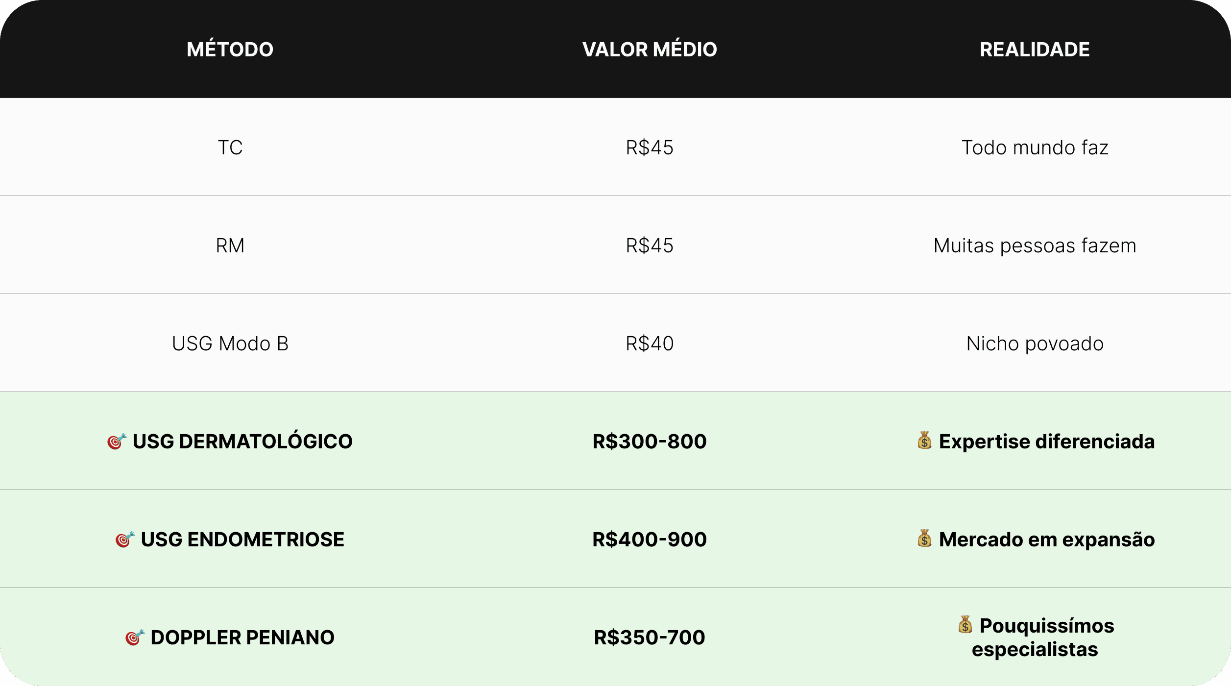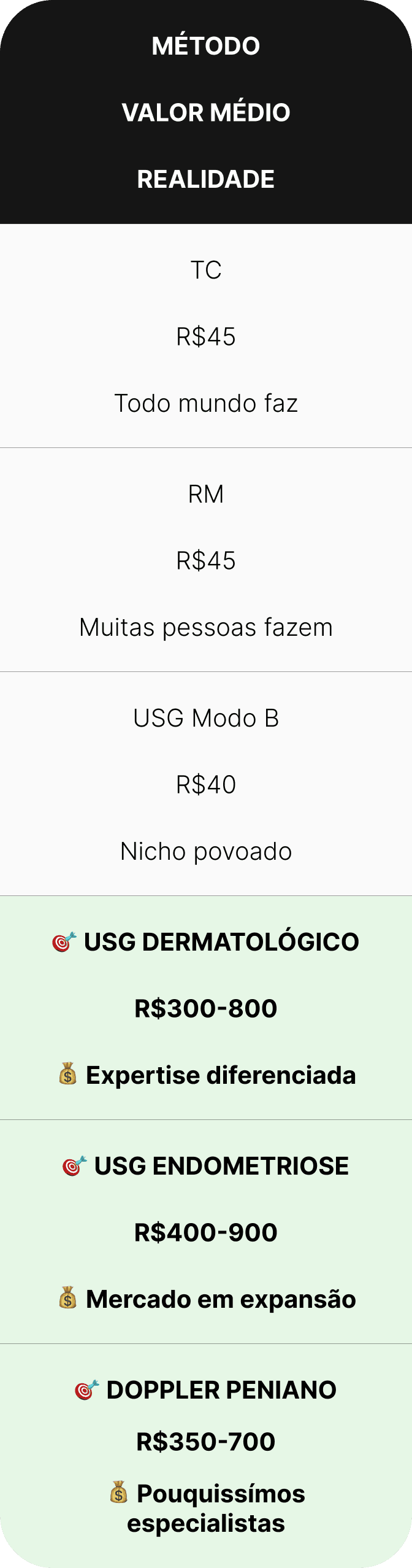 A precificação do seu trabalho passa por você tirar o título de especialista pelo CBR e também por você entender quais são os nichos mais precificáveis da imagem, principalmente dentro da ultrassonografia (Dermatológico, Endométriose Profunda e Doppler Peniano).